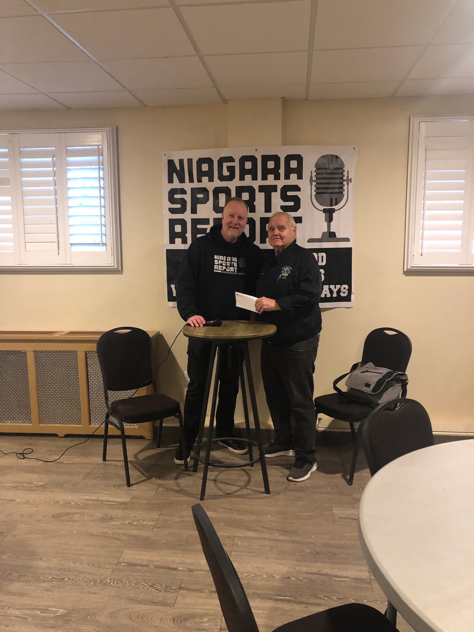 Lion Grant was on hand this morning to deliver a $1,000 donation to the Niagara Peninsula Foundation for Children with Rod Mawhood from the Niagara Sports Report at their live show at the Merritton Legion! The Port Dalhousie Lions Club are proud to support this important organization and the amazing work they do throughout Niagara supporting children in need!